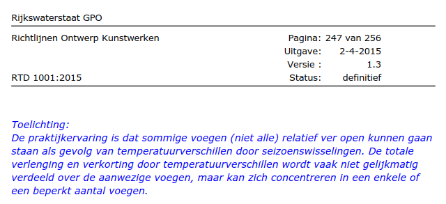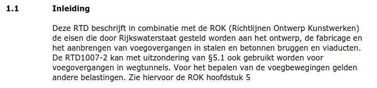 Voor het bepalen van de voegbewegingen gelden andere belastingen dan beschreven in RTD1007-2 hoofdstuk 5.1. RTD1007-2 verwijst hiervoor naar de ROK hoofdstuk 5.