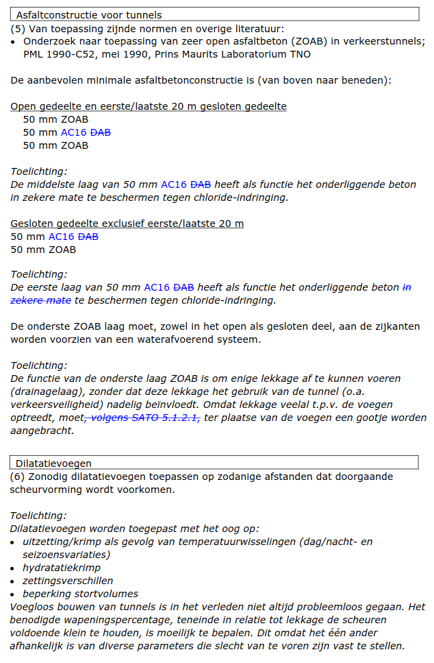 In het SATO-document en in het Handboek Tunnelbouw van het Centrum Ondergronds Bouwen, wordt de ingenieur nog steeds bekend gemaakt met de beschikbare traditionele details voor de overgang van moten en de detaillering van de verharding op deze overgang (voor geringe vervormingen). Dat er op verschillende plaatsen in het land zaagsneden zijn vervangen door bitumineuze voegovergangen is niet veel mensen bekend. Nieuwe details zijn niet voor handen al worden deze projectmatig wel eens ontwikkeld. Over het algemeen kan worden gesteld dat de markt nog niet helemaal goed begrijpt hoe hiermee om te gaan. Er worden signalen opgepikt waarbij de markt een behoefte uit om meer duidelijkheid te krijgen via de richtlijnen. Binnen Rijkswaterstaat buigt Sr. Adviseur Frank van Beek zich over deze kwestie. Om vooruitlopend inzicht te bieden in de actuele eisen die op deze materie van toepassing zijn, worden 2 hiervan nader toegelicht.