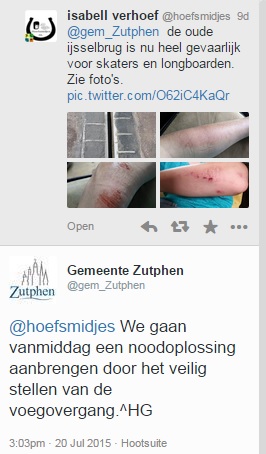Soms zit een ongeluk in een klein hoekje. In het voorbeeld hieronder kan het fietspad wellicht aanvullend worden afgedekt met een stalen plaat. Dat vraagt in dat geval ook om een hogere aansluiting van de verharding op de voegovergang.
