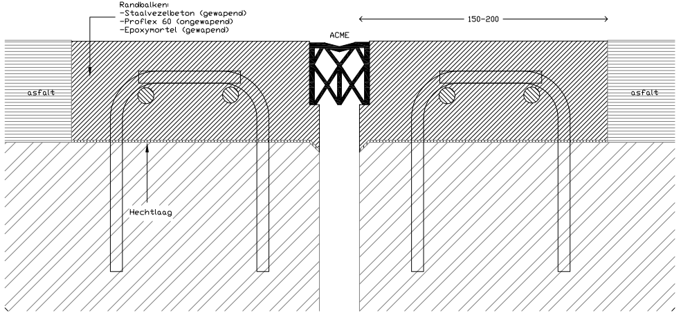 Dit type voegovergang voldoet niet aan de betrouwbaarheid en levensduur eis van de RTD1007-2.