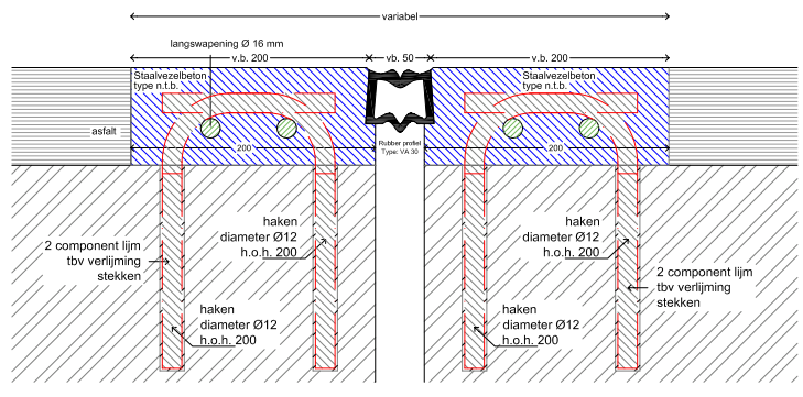 De voegbalken zijn verankerd middels wapeningsstekken.