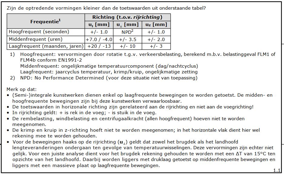 Δy = +/- 3.5 mm (dwarsrichting kunstwerk),