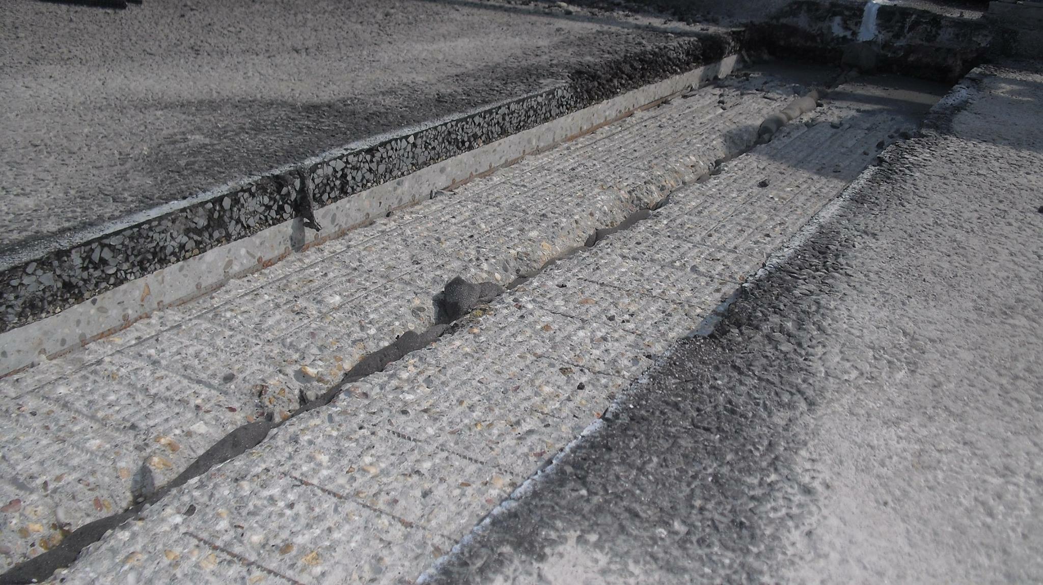 Bij het wijken van de gaten nabij de dilatatie kan het beton gaan uitbreken waardoor betonschollen ontstaan. Dit treedt voornamelijk op wanneer het boorgat in de dekkingszone van de onderliggende betonconstructie wordt aangebracht. Deze schade dient op een geschikte wijze hersteld te worden en zal in de meeste gevallen worden gecombineerd met het aanbrengen van de staalvezelbetonnen voegbalken. Mogelijk is het nodig om deze locaties “voor te gieten” met een fijnkorrelige gietmortel alvorens het staalvezelbeton aan te brengen zodat de afgebroken schil / schol netjes aangeheeld uit de kist verschijnt.
