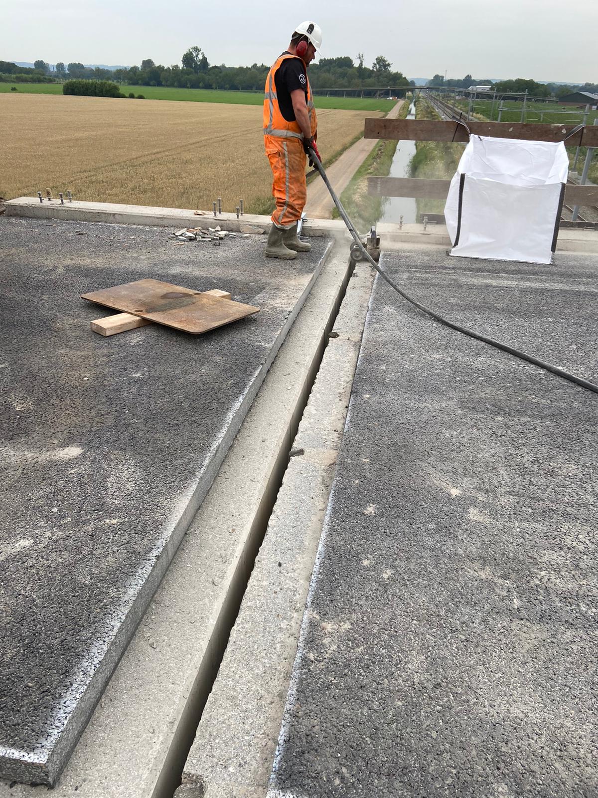 Na het opbreken van het asfalt wordt de ondergrond schoon geblazen en/of gereinigd. Opengebroken beton dat bloot ligt na het verwijderen van de oude voegovergangen, hoeft niet opgeruwd te worden. Bij nieuw betonwerk dient het oppervlak: gestraald of gebouchardeerd te worden om de ondergrond rein en opgeruwd te krijgen. Afhankelijk van het nieuwe voegconcept dient het beton volledig schoon te zijn voor een optimale aanhechting van de nieuwe voegbalken