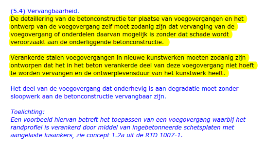 De toepassing van een lusverankering biedt in de meeste gevallen oplossingsruimte om een voegovergang te modificeren wanneer de bovenzijde van de constructie gebreken vertoont. Hoewel dit constructief aangetoond dient te worden, is het principe van dergelijke voegovergangen modificeren een ideaal uitgangspunt. Met het modificeren is het mogelijk om bestaande voegovergangen in minder tijd en met minder risico’s uit te voeren. De ingreep behelst slechts een aanpassing van de staalconstructie waardoor destructief sloopwerk in de hoofddraagconstructie niet noodzakelijk is. De beoogde voordelen zijn aanleiding geweest om in ROK1.3 voor te schrijven dat het ontwerp van een nieuw kunstwerk dient uit te gaan van een verankering van de voegovergangen die even lang mee gaat als de constructie zelf. In principe dus 100 jaar.