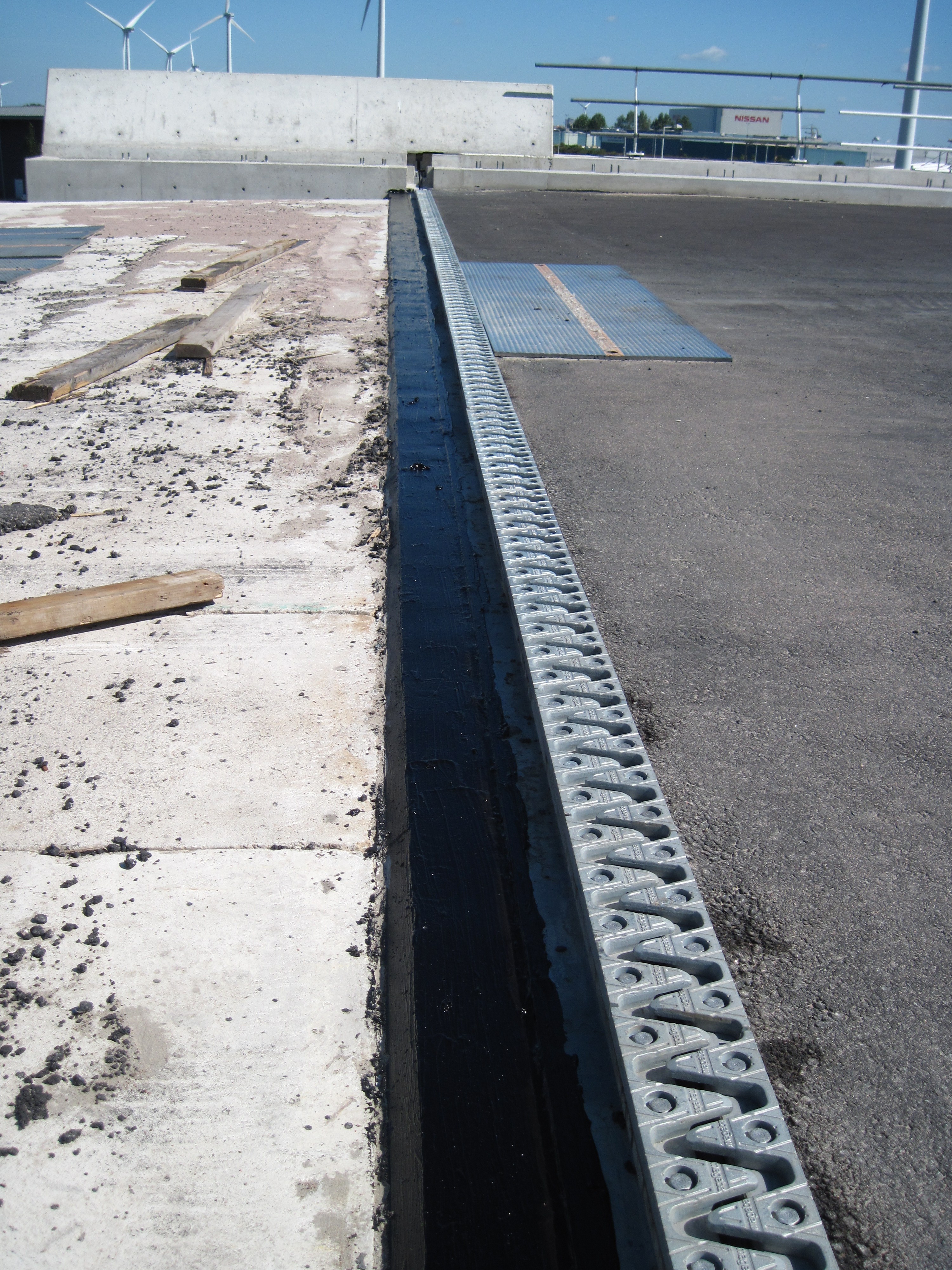 De aansluitingen van een waterdichte verharding met de voegovergang waarbij aan de waterdichtheideisen wordt voldaan.