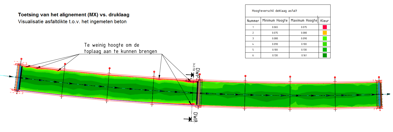 - de ingecalculeerde gewichtsbelasting op het kunstwerk wordt niet overschreden waaruit een maximale dikte van de verharding volgt.
