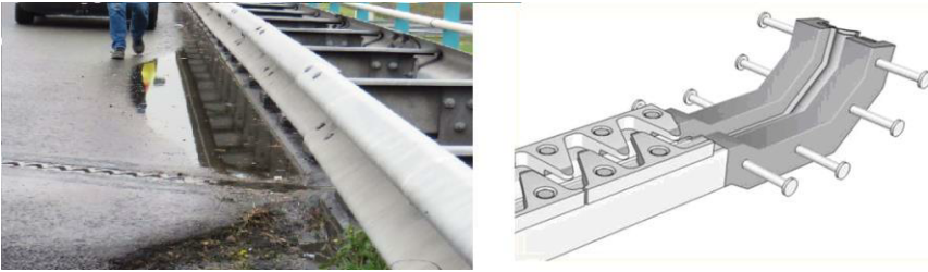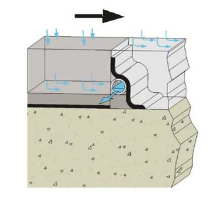 Wanneer de voegovergang een hindernis vormt voor de waterafvoer van de bovenstrooms gelegen open deklaag dient een drainagesysteem te voorzien in de adequate afvoer van het water.