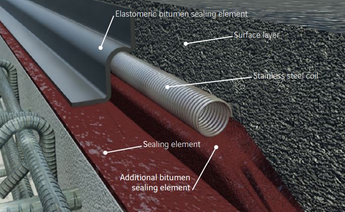 - Flexibele voegovergangen worden altijd voorzien van een slijtlaag; deze slijtlaag is niet erg duurzaam en vereist onderhoud.