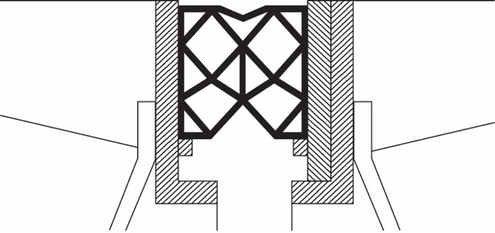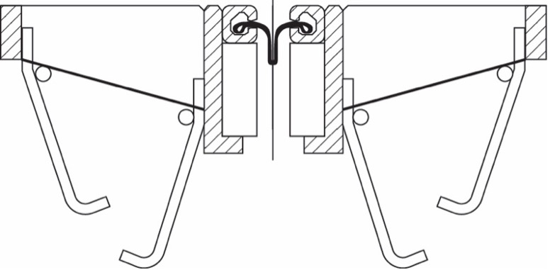Het rubber afdichtingsprofiel in de vorm van een koker (ook wel doosprofiel genoemd of de Duitse benaming ‘Kastenprofil’) wordt zowel in de bovenzijde als de onderzijde ingeklemd in klauwen in de veronderstelling van een dubbele waterkering.