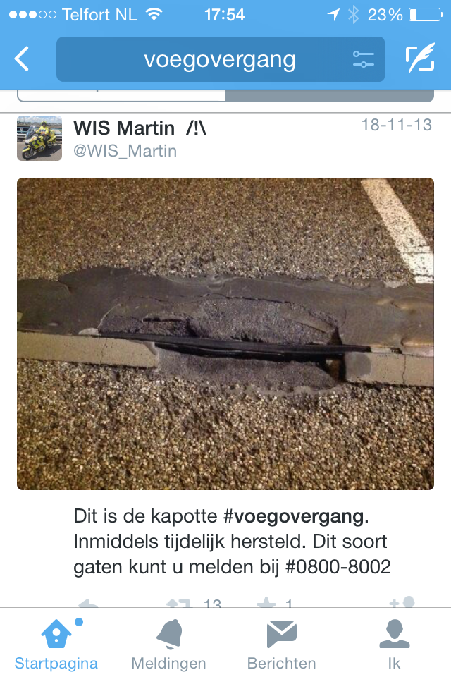 Met meer dan 130 kilometer voegovergangen verspreid in ons land en de intensiteit van ons wegennet, zorgen ook voegovergangen zo nu en dan voor wat verkeershinder. De dynamische belasting op alle staalcomponenten, verankeringen en beton vraagt veel van de voegovergang. De vermoeiing van deze onderdelen ontwikkeld zich in een razend tempo en leidt tot plotseling uit- of afbreken van constructiedelen. Dit vraagt om een snelle aanpak en veelal zal de weg direct of in de navolgende avonduren worden afgesloten voor een spoedreparatie.